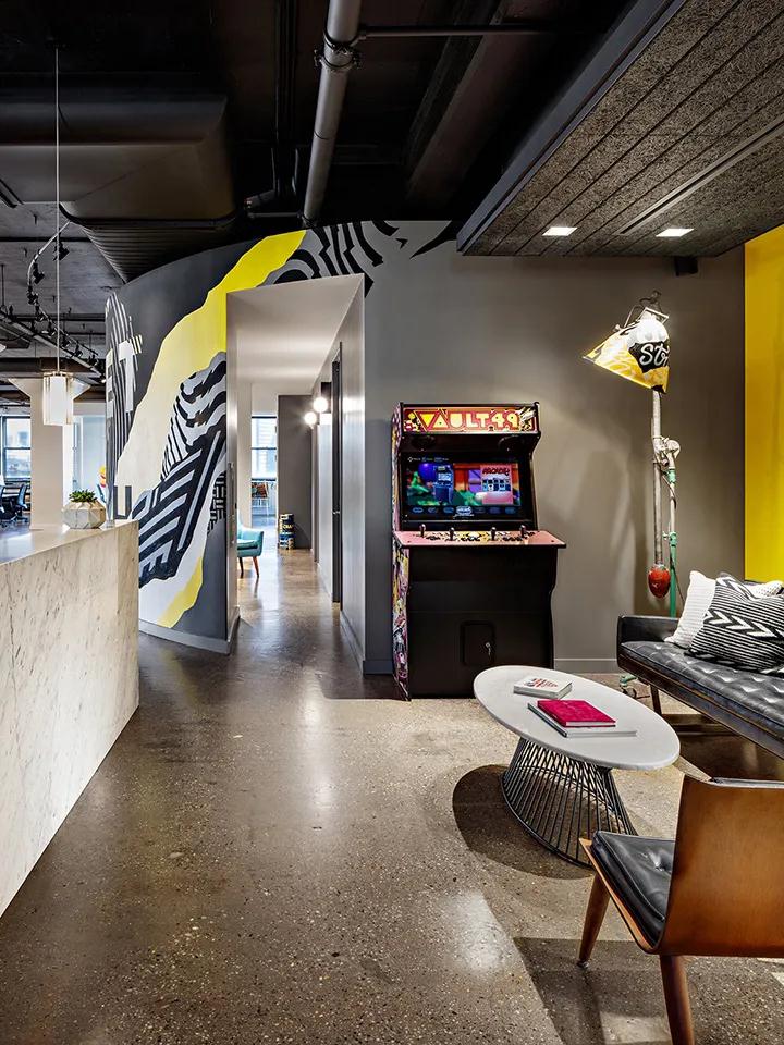 品牌創(chuàng)意設(shè)計(jì)機(jī)構(gòu)Vault49,公司起源于倫敦傳播學(xué)院的版畫(huà)室里,創(chuàng)始人在那里不期而遇,暗中相互覬覦對(duì)方的作品,合作的野心由此蔓延,兩個(gè)街頭藝術(shù)家成就了到世界創(chuàng)意工作室的傳奇故事。本案是其位于紐約的總部辦公室,Capital C Interiors裝修設(shè)計(jì)團(tuán)隊(duì)打造。
