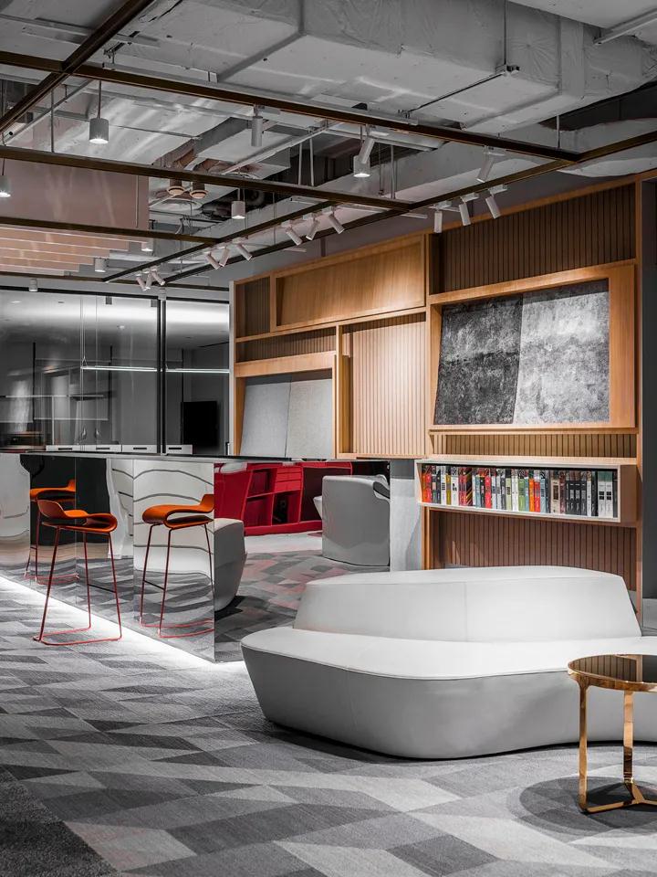 深圳裝飾公司的想法與該項(xiàng)目的初衷是一致的。設(shè)計(jì)師一直在考慮復(fù)雜環(huán)境中兩個(gè)空間之間的關(guān)系。因此,設(shè)計(jì)師削弱了展廳的部分展覽功能,以滿足辦公空間的需求和標(biāo)準(zhǔn)。通過大量的吸音材料和復(fù)雜的聲學(xué)處理,設(shè)計(jì)師減少了展廳區(qū)域的噪音和地面高度所帶來的回聲,并充分利用了展廳的優(yōu)勢,例如水景,垂直植物和藝術(shù)品豐富了辦公環(huán)境,盡管展廳+辦公室的空間形式有所增加,此外,如何實(shí)現(xiàn)復(fù)雜性,但在最終展示空間時(shí)的使用體驗(yàn)卻達(dá)到了不同的體驗(yàn)。最初是零售商店的二樓。為了確保展館的地板高度要求,特別考慮了入口。為了優(yōu)化人員流動(dòng)并抵消辦公空間和展覽空間之間的直接聯(lián)系,設(shè)計(jì)師設(shè)計(jì)了一些散布在整個(gè)空間中的緩沖區(qū)。這些空間不僅緩沖了空間之間的關(guān)系,而且增加了空間的層次感。走進(jìn)大廳,一側(cè)是展覽廳,另一側(cè)是綠色植物,使展覽空間充滿生機(jī)。前臺聯(lián)合辦公室是展覽和辦公室并存的緩沖,而后場則是正式的辦公室區(qū)域。