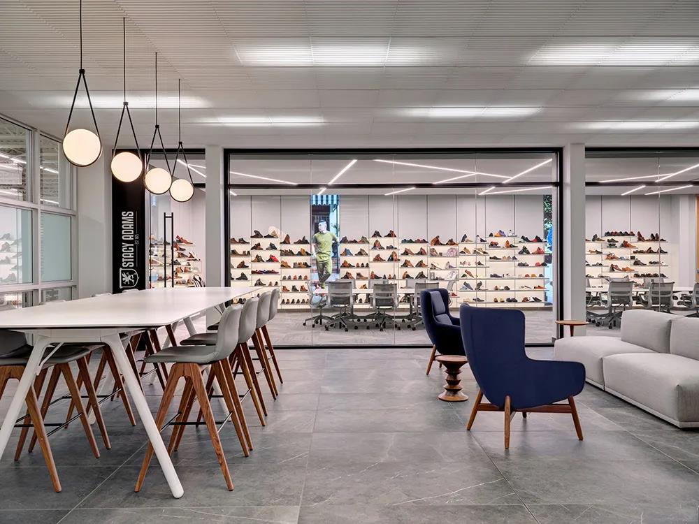 全新設(shè)計的品牌陳列室位于一樓的中心,接待批發(fā)和零售客戶。它目前以虛擬方式顯示。每個房間都代表著一個品牌的體驗(yàn)品質(zhì);但同時,所有的房間都是由相似的材料連接起來的。設(shè)計團(tuán)隊(duì)規(guī)劃了一個中央接待空間,為所有品牌房間服務(wù),還有一個安靜的工作或午餐空間,直到他們可以與客戶面對面交流。