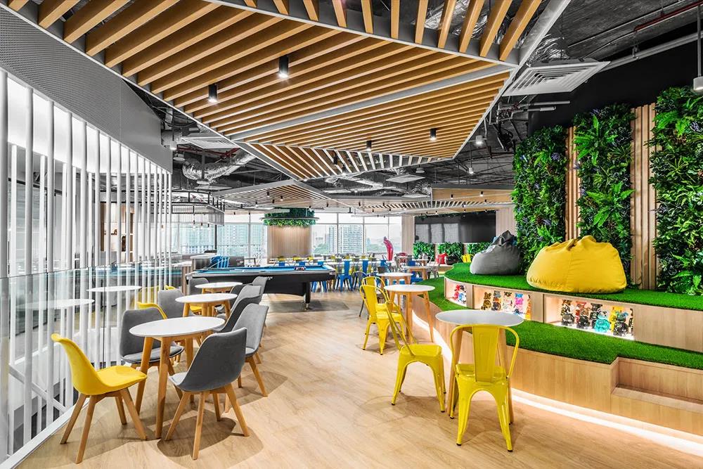 如此一來(lái),沒有了四壁的束縛,人就可以更加的放飛思緒,翱翔于天際。在空間規(guī)劃上,深圳裝修公司設(shè)計(jì)團(tuán)隊(duì)引入自由流動(dòng)的開放理念,以盡可能少的隔斷營(yíng)造開放的空間感,最大限度地利用自然采光,營(yíng)造溫馨明亮的空間氛圍。室內(nèi)樓梯將上下兩層緊密相連,靠近樓梯處規(guī)劃了大型休閑合作空間。這個(gè)多功能協(xié)作空間最多可容納 200 人。深圳裝飾公司這里還規(guī)劃了大型派對(duì)空間和自助餐廳,可舉辦可容納100人的公司活動(dòng)。辦公室還專門規(guī)劃了一個(gè)大廳空間,向客戶展示公司的發(fā)展。此外,裝飾公司還有大型正式會(huì)議室、形式多樣的一系列會(huì)議室、可供兩人洽談的工作艙、圖書館、健身房/舞蹈室、配備卡拉OK系統(tǒng)的游戲室、音樂室、小睡艙、小吧臺(tái)、兒童房和哺乳室(供打算帶孩子上班的父母使用)、培訓(xùn)室等雜項(xiàng)空間。